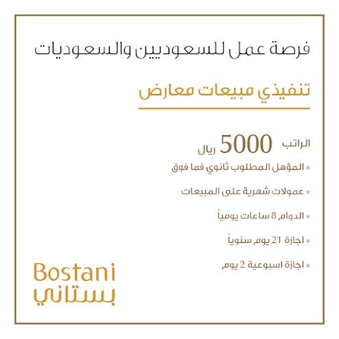 شركة البستاني تعلن عن وظائف للسعوديين والسعوديات براتب 5000 وإجازة يومين في المدن التالية : الرياض – جده – الدمام – الخبر – الأحساء – المدينة المنورة..