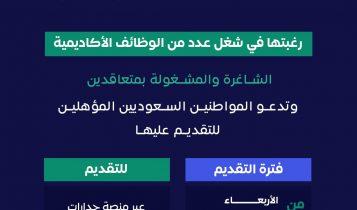 تعلن جامعة طيبة عن رغبتها في جذب الكفاءات الوطنية المؤهلة لشغل عدد من الوظائف الأكاديمية الشاغرة والمشغولة بمتعاقدين بنظام التعاقد وحيث تدعو الجامعة المواطنين السعوديين الذين تنطبق عليهم الشروط إلى تقديم طلباتهم للانضمام إلى هيئة التدريس والمساهمة في المسيرة التعليمية والبحثية للجامعة، وذلك وفقا للتفاصيل وطريقة التقديم المبينة أدناه: