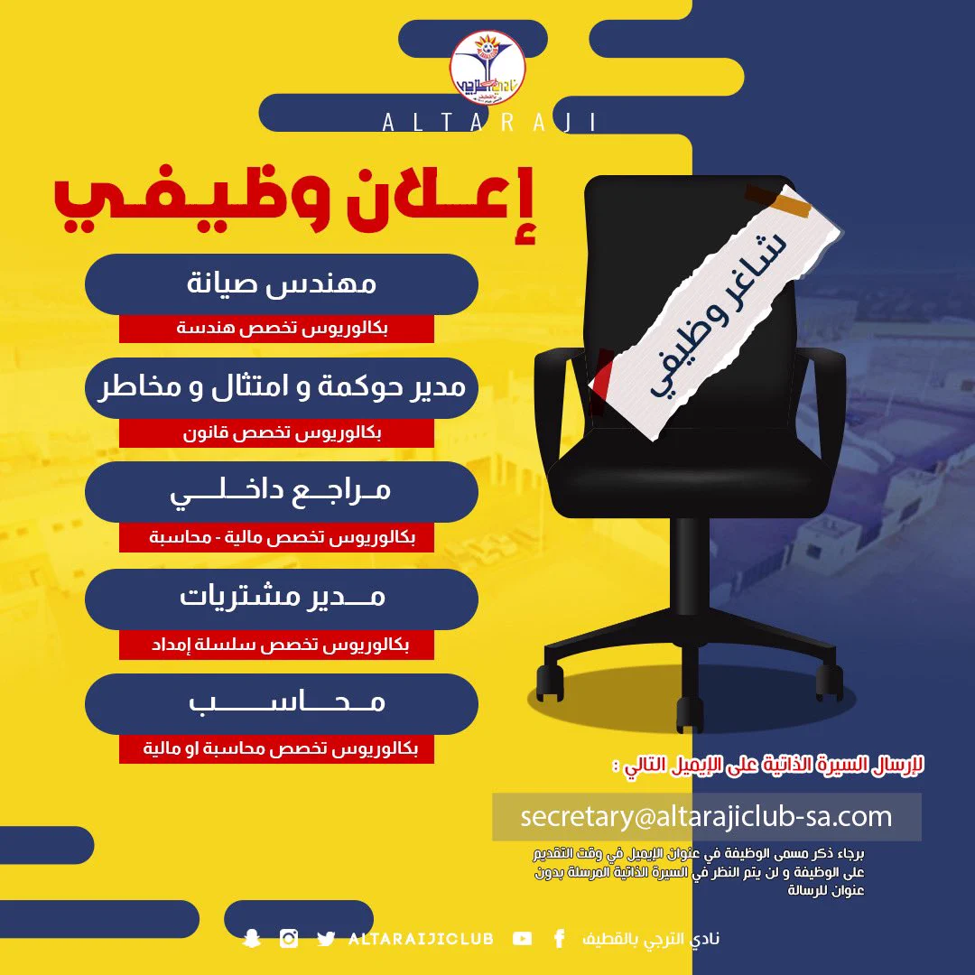 للتقديم في وظائف نادي الترجي السعودي، أرسل هنا