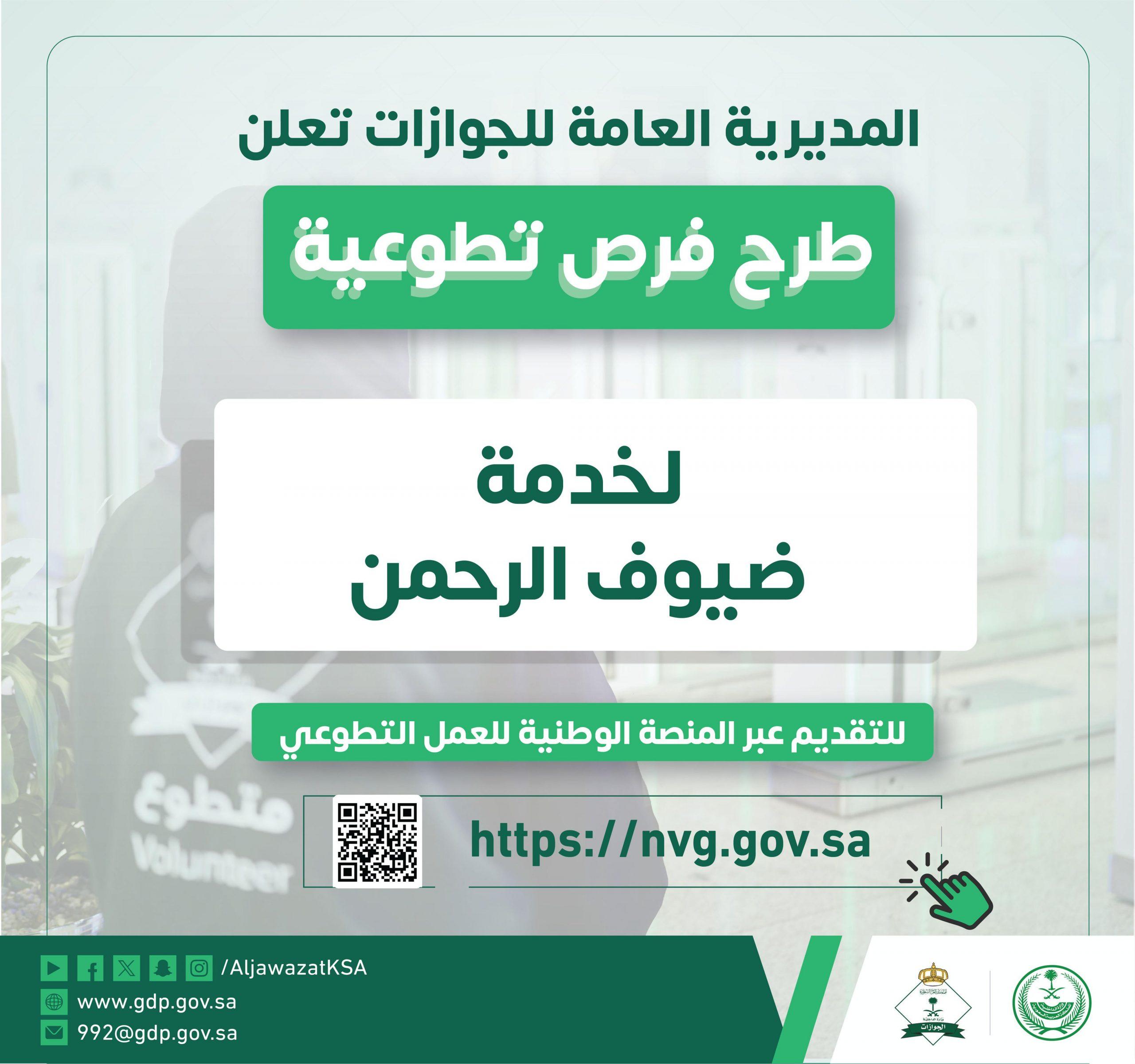 المديرية العامة للجوازات تدعو للتطوع عبر المنصة الوطنية