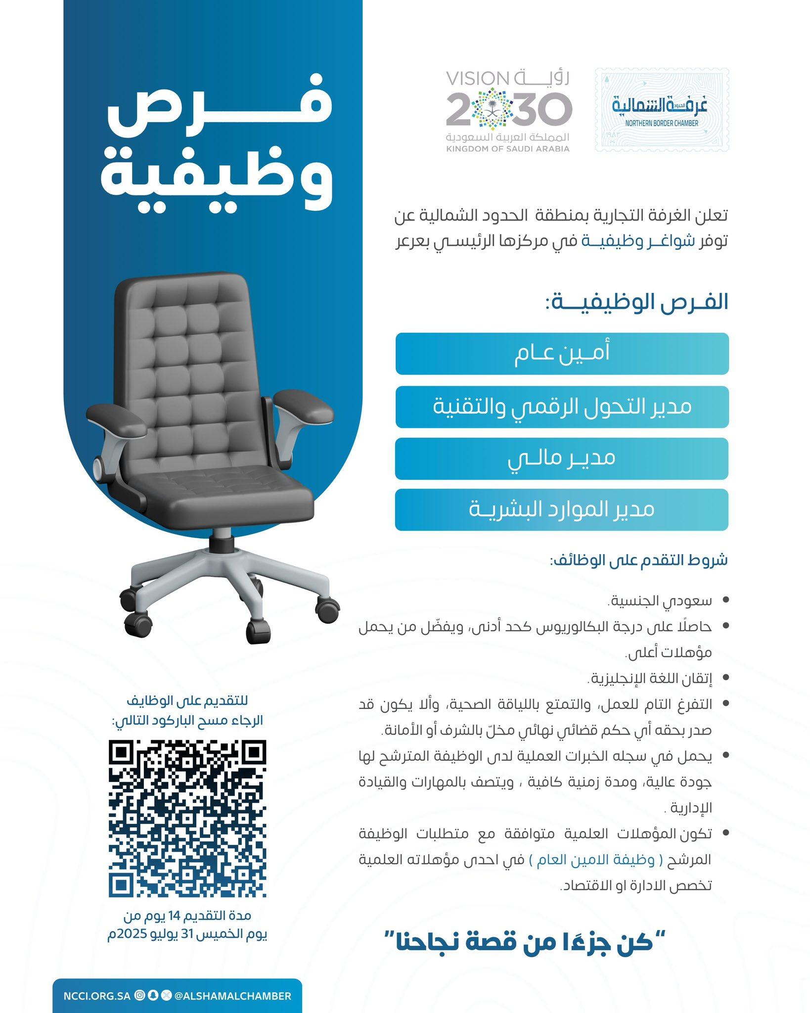 الغرفة التجارية بعرعر تعلن عن وظائف قيادية شاغرة