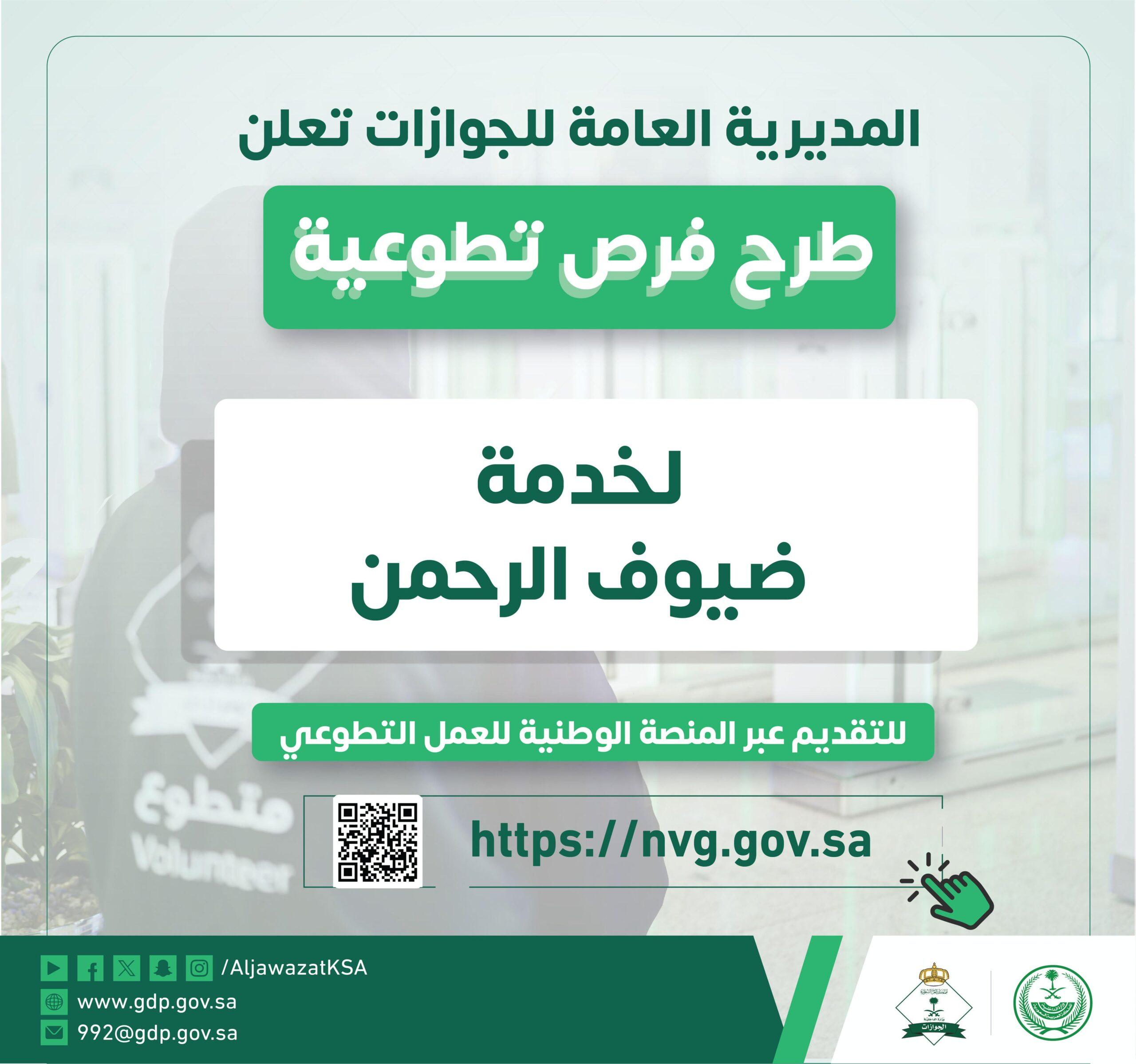 الجوازات تفتح باب التطوع للمساهمة في خدمة الوطن