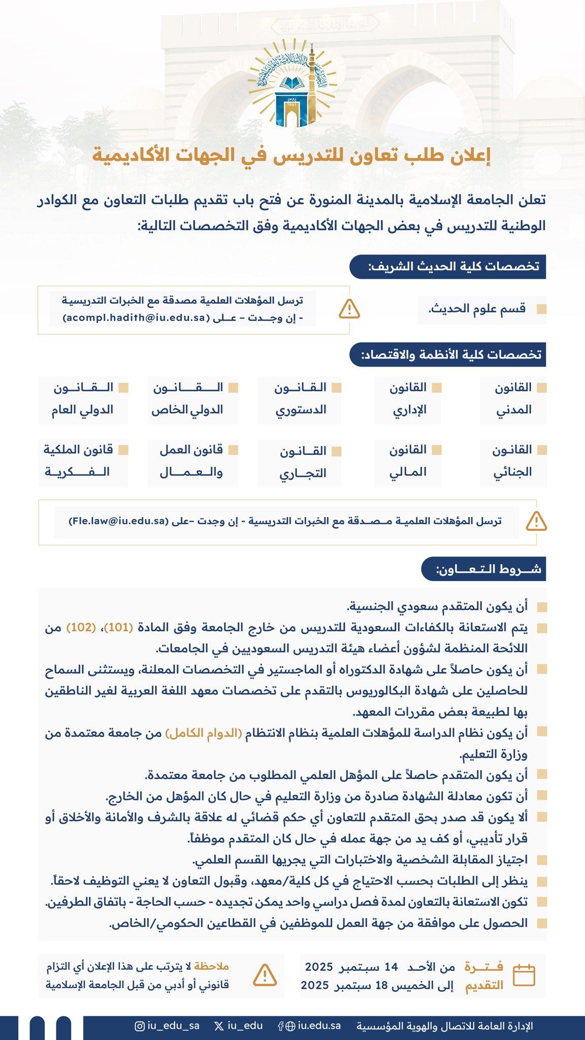 - ملاحظة: قبول التعاون لا يُعد توظيفًا، ومدة التعاون هي فصل دراسي واحد قابلة للتجديد.