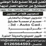 تعلن شركة مصنع مكة الوطني للمطابخ عن وظائف شاغرة للسعوديين من الجنسين للعمل في