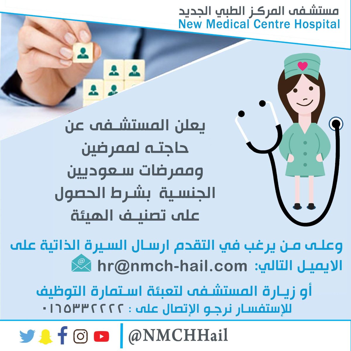وظائف صحية للجنسين بمستشفى المركز الطبي الجديد في حائل