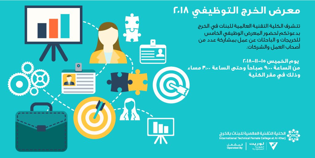 الكلية التقنية العالمية للبنات بالخرج تنظم ” المعرض الوظيفي الخامس ” وذلك يوم الخميس 15 نوفمبر 2018 بمقر الكلية و الدعوة عامة للخريجات والباحثات عن عمل .