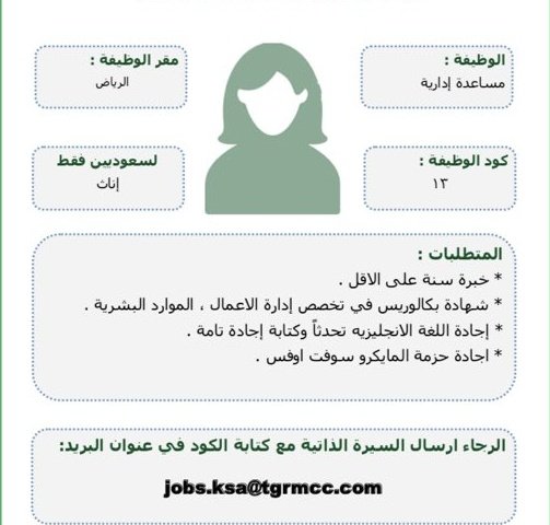 للتواصل والتقديم على الوظيفة : jobs.ksa@tgrmcc.com