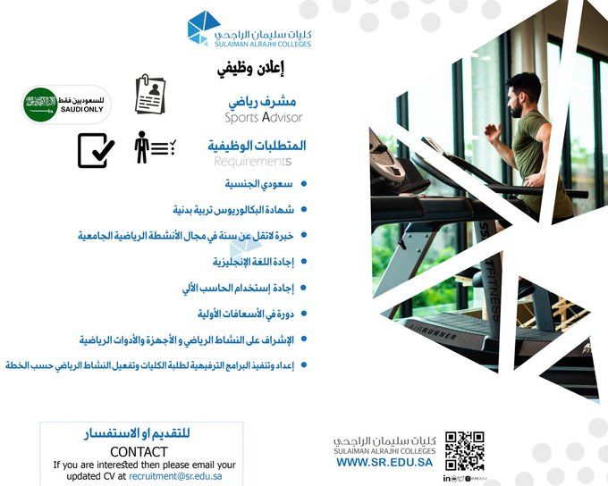 **ترسل السيرة الذاتية على البريد الإلكتروني recruitment@sr.edu.sa