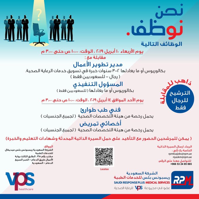 الشركة السعودية ريسبونس بلس للخدمات الطبية بالدمام تعلن عن توفر