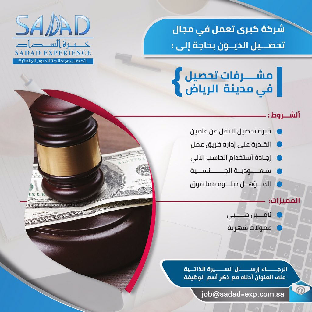 شركة كبرى في (الرياض) تعمل في مجال تحصيل الديون ،تعلن عن توفر وظائف (إدارية) نسائية وذلك وفق المسميات والتفاصيل التالية: