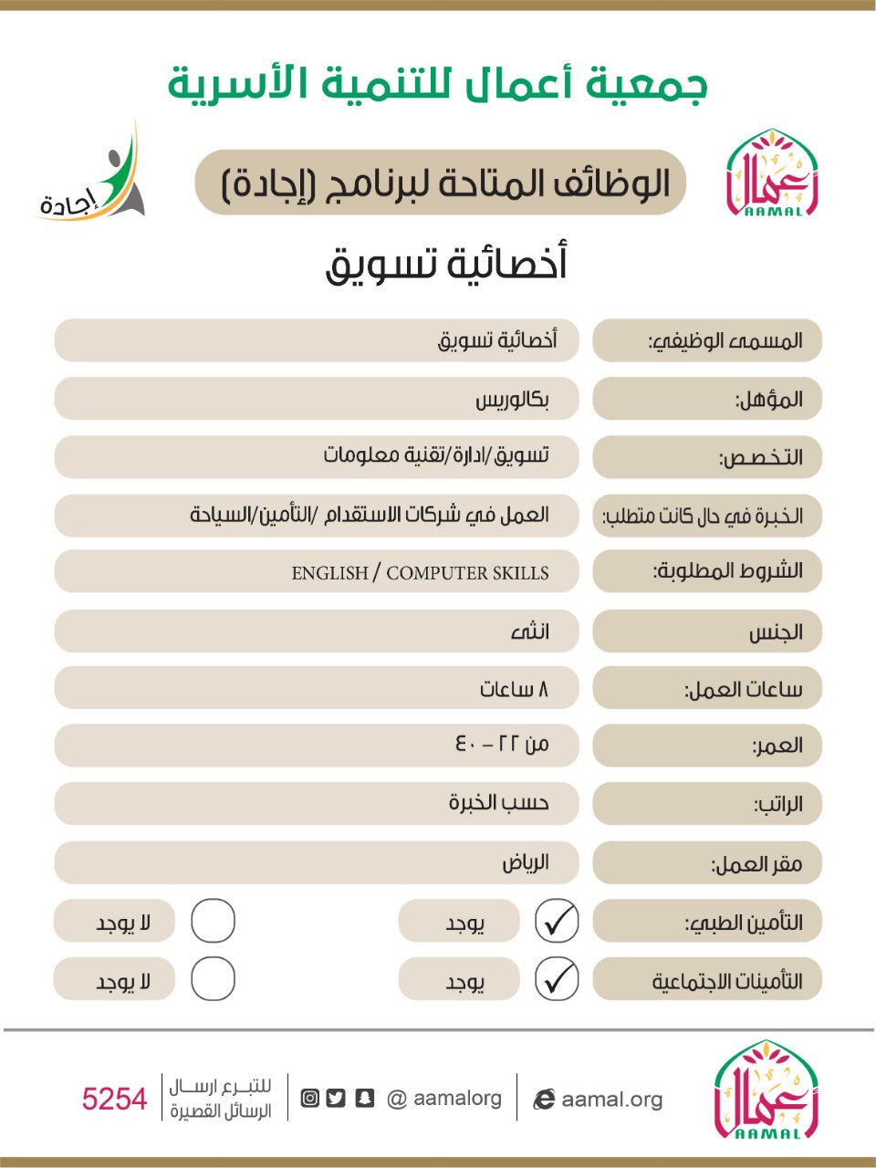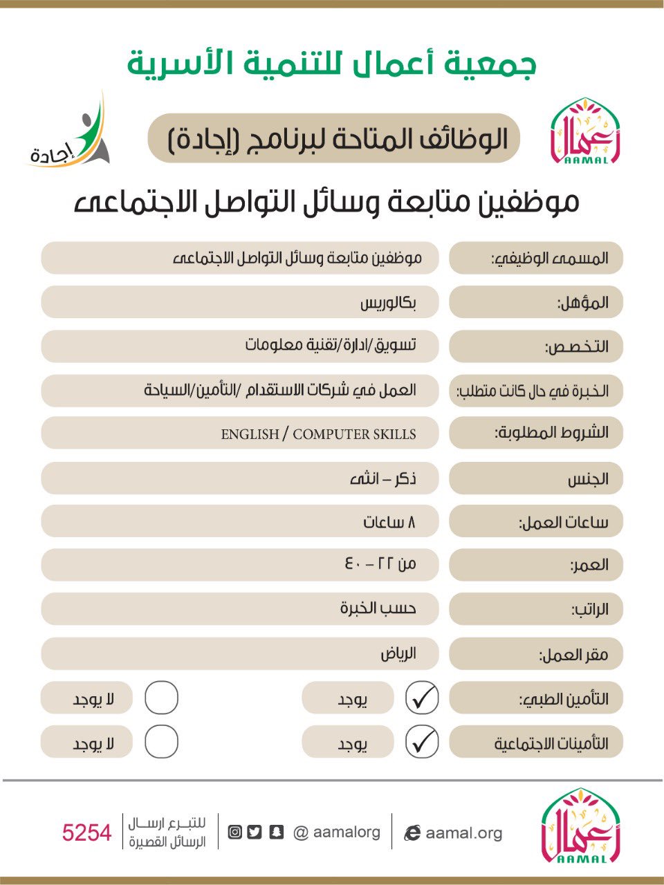 جمعية اعمال بالشراكة مع شركات الاستقدام و (التأمين) و (السياحة) تعلن عن عدة وظائف شاغرة •للرجال و النساء• * من حملة (البكالريوس) في عدة تخصصات.. التفاصيل أدناه