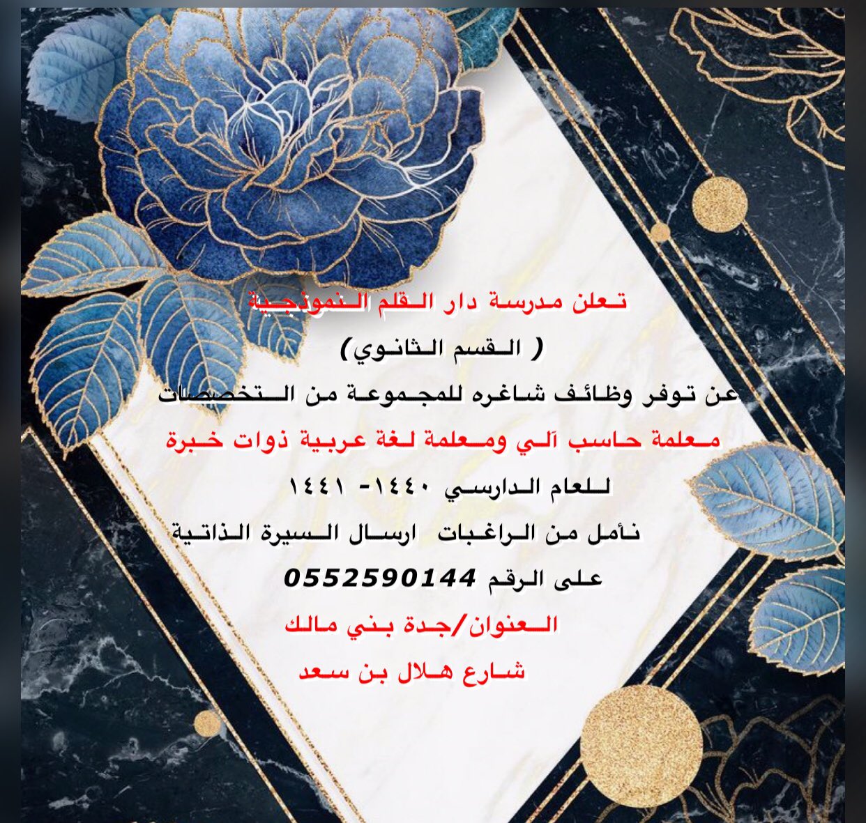 تعلن ( مدرسة دار القلم النموذجيه ) ب (جدة) عن توفر وظائف (معلمات) لمجموعة من التخصصات التالية: