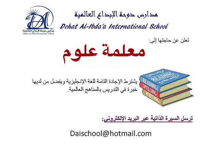 مدارس دوحة الابداع تعلن وظائف للنساء في الاحساء