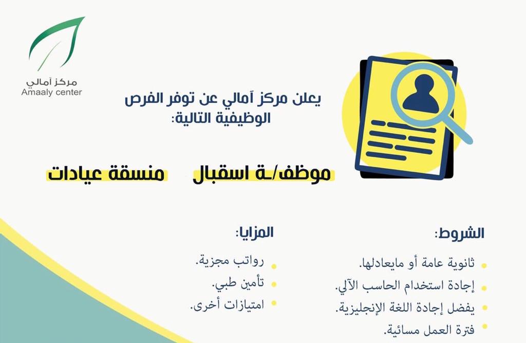 يعلن مركز آمالي بالرياض عن توفر الفرص الوظيفية التالية: