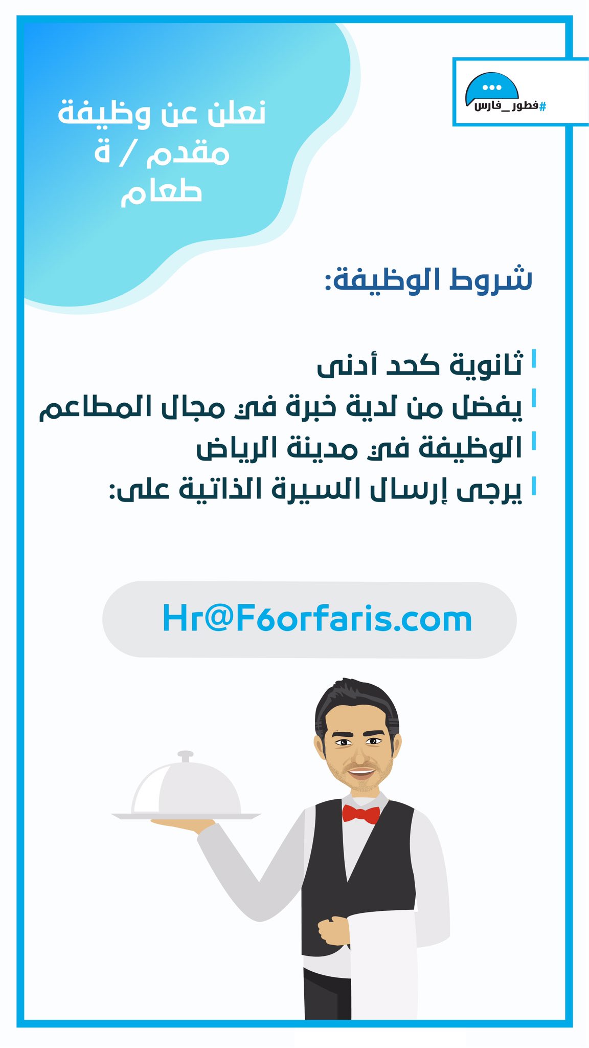-خبرة لاتقل عن سنتين في مجال المطاعم.