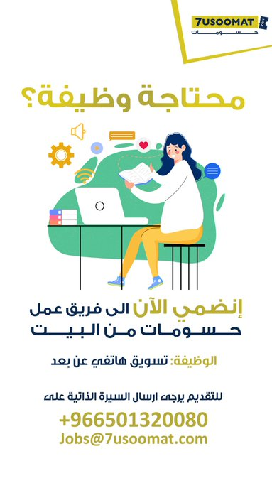 *المميزات: إمكانية العمل عن بعد مرونة في اختيار اوقات العمل راتب ثابت+عمولات مجزية