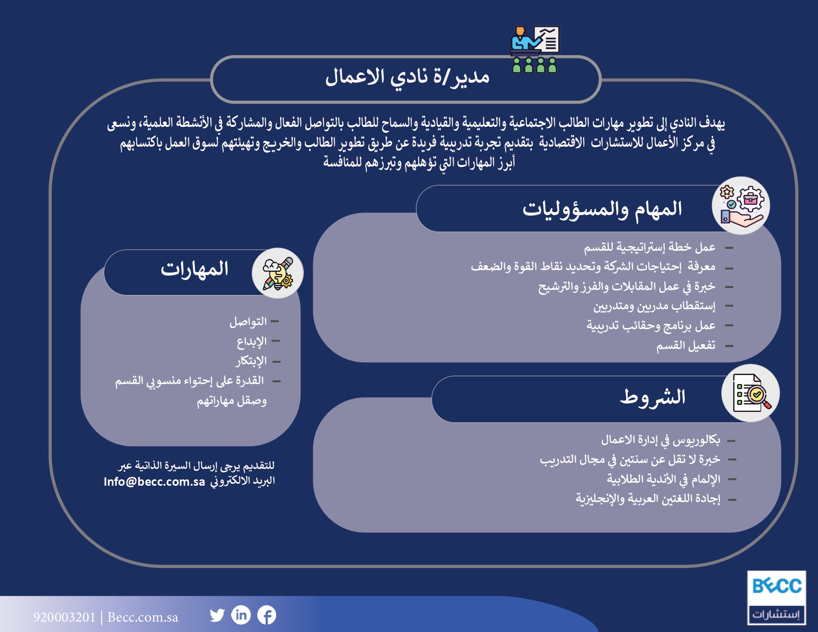 مركز الأعمال للاستشارات الاقتصادية فتح باب التقديم على شاغر وظيفي إداري